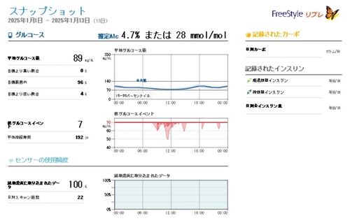 はい。こんにちは。 マダオです。 2025年1回目のリブレによる計測結果発表のお時間です。 今回1月は年末年始に血糖値の乱れがないかの定期チェックとミネラルウォーターのPFAS汚染確認のために装着しました。 ミネラルウォーターがかなり問題で、血糖値が滅…